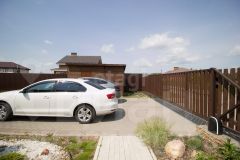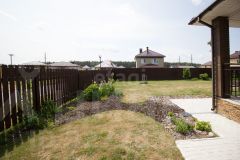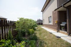 Участок площадью 10 соток имеет правильную форму, выровнен и огорожен забором из профлиста и штакетника. Организована парковка на два автомобиля из брусчатки с автоматическими воротами, выполнена отмостка шириной 1 метр. Участок оснащен полноценным дренажем, автоматическим поливом, высокими грядками и плодовыми насаждениями. Подведены коммуникации для будущей бани, гаража и теплицы. Дополнительно на территории расположена бытовка для хранения инвентаря.