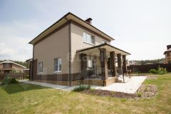 Планировка продумана для комфортного проживания: на первом этаже испанский керамогранит, лестница отделана натуральным дубом с коваными элементами, современная кухня со встроенной техникой. Есть открытая веранда с возможностью остекления, фасад дома оборудован подсветкой.