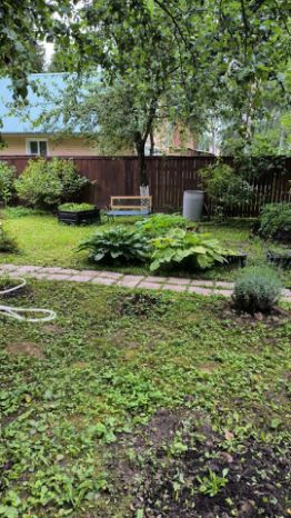 Ухоженный участок с плодовыми деревьями и кустарниками, много цветов