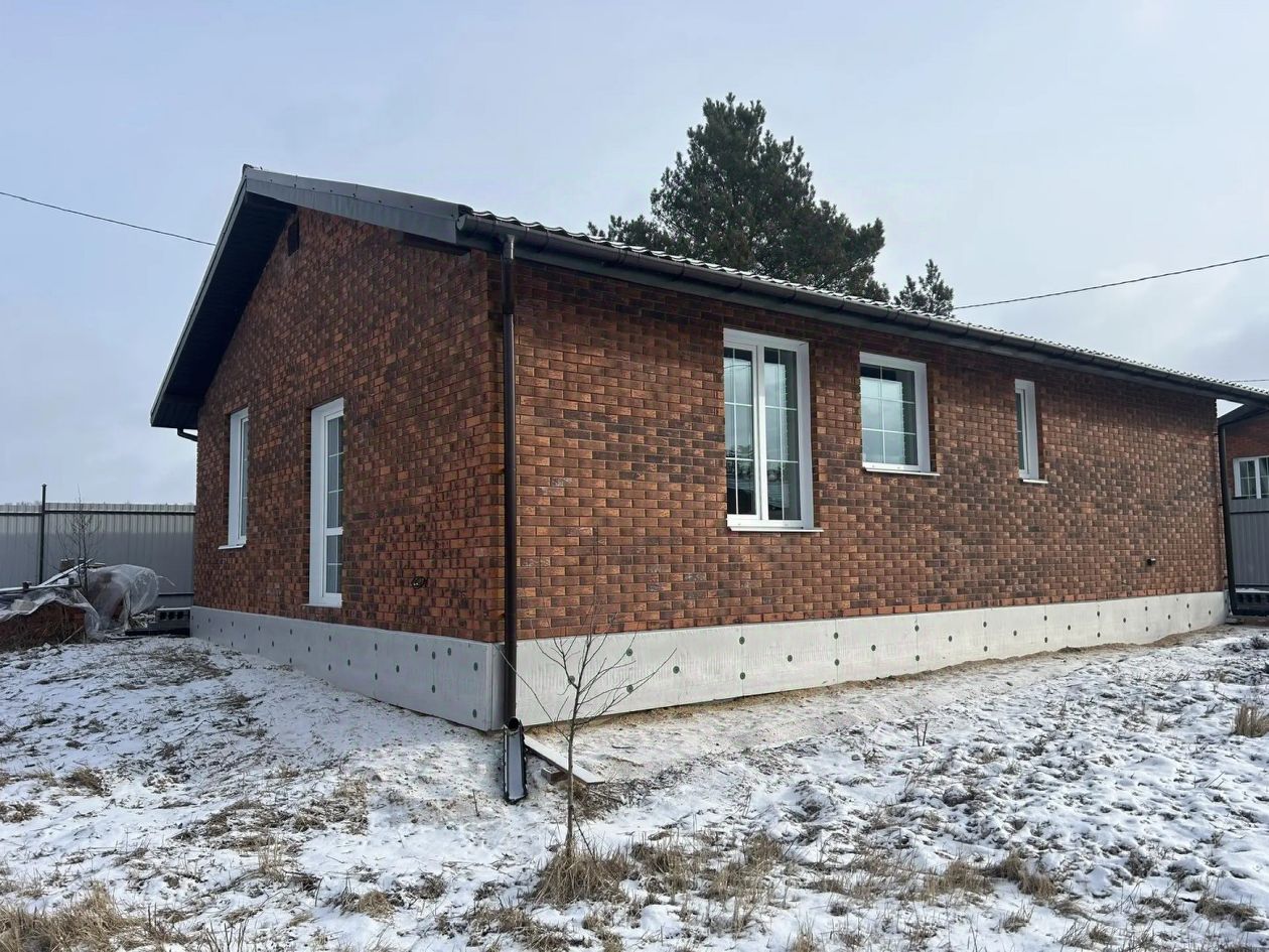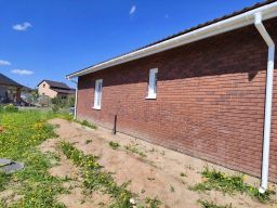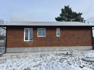 Дом будет расположен на ровном участке 5 соток. Назначение земель - ИЖС. Общая площадь дома - 104 кв.м., один этаж. Дом выполнен из газобетона ,с облицовкой фасада кирпичом, на фундаменте - монолитная плита . Кровля - метоллочерепица.