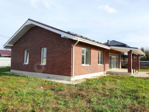 Дом расположен на ровном участке 12 соток. Назначение земель - ИЖС. Общая площадь дома - 134 кв.м . Дом выполнен из газобетона толщиной 375 мм. с облицовкой фасада кирпичом. Кровля - металлочерепица черепица. Установлена металлическая водосточная система.
