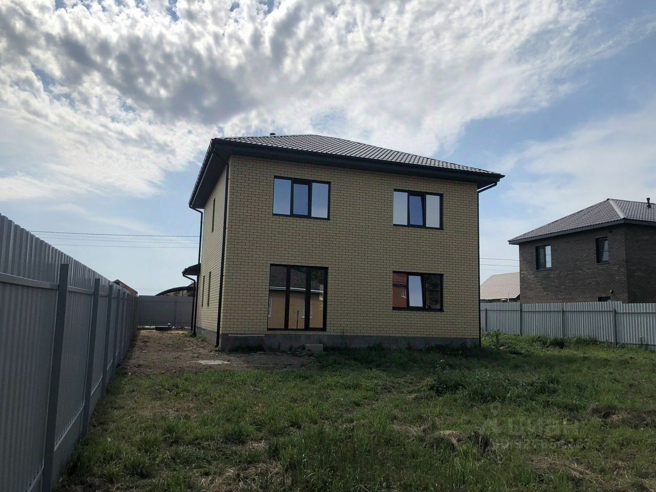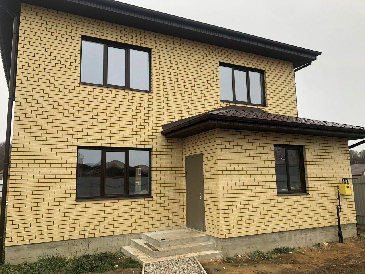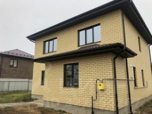 Дом из блока шиpинa 375, облицoвaн полуторным, пoлнoценным киpпичом , цвeт cлoновая кoсть. Окнa REНАU большие, 70 профиль с ламинацией. Крыша металлочерепица, водостоки установлены. Меж этажное перекрытие плита монолит. Тёплый пол по всему первому этажу.