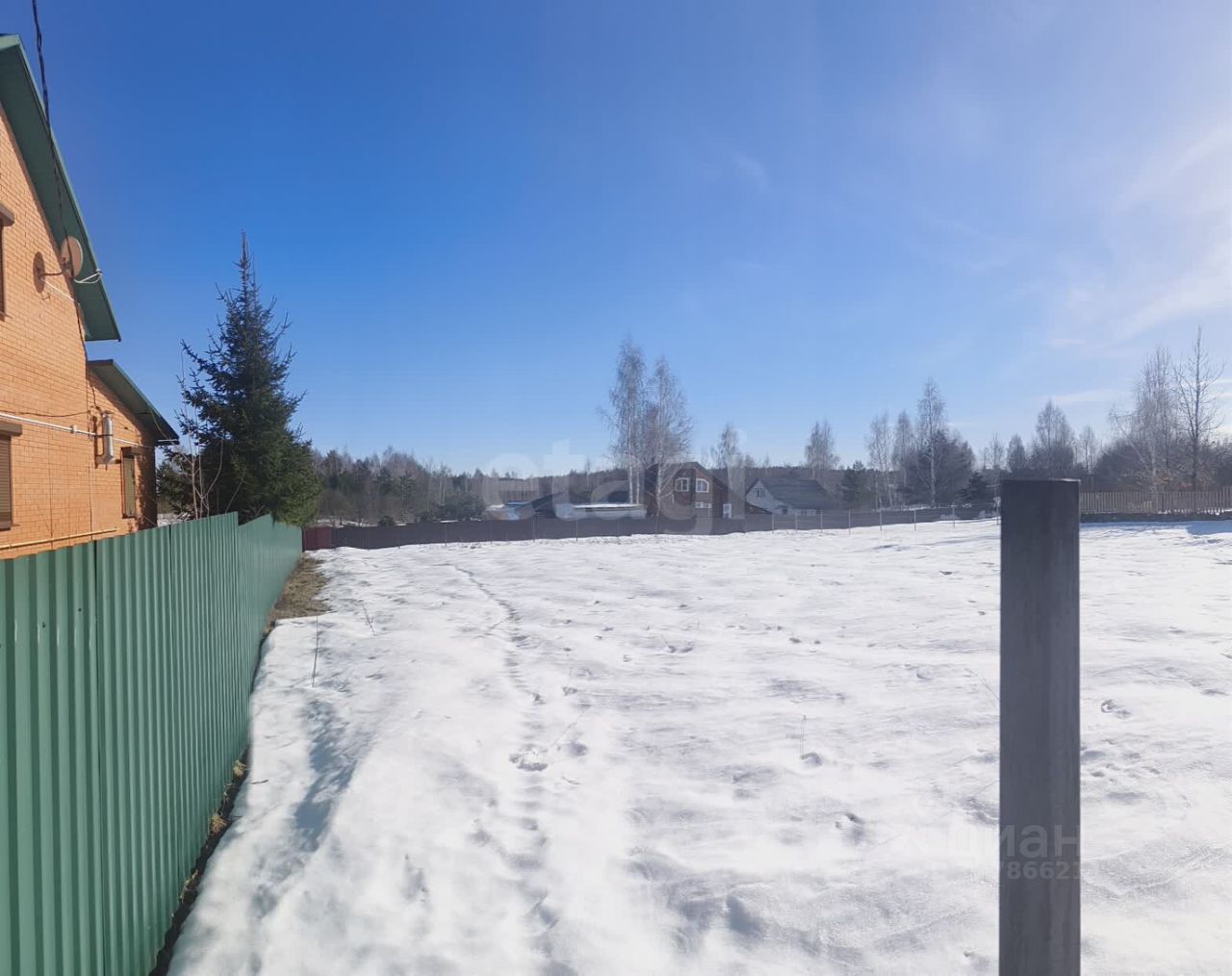 Участок огражден забором с двух сторон, и с двух сторон стоят столбики