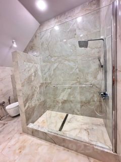 Напольное покрытие керамогранитная плитка с системой теплый пол, а также массивная половая доска. Входная и межкомнатные двери из массива с итальянскими ручками. Стены оштукатурены и оклеены дорогими дизайнерскими обоями, сделаны подвесные потолки с огромным количеством точечных светильников и вариантов освещения. Смонтирована вентиляционная система, бытовой пылесос.