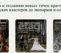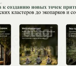 Идеи для развития Глэмпинги, экотропы, Wellnessретриты, семейный и уикендтуризм, событийные площадки, активный отдых.