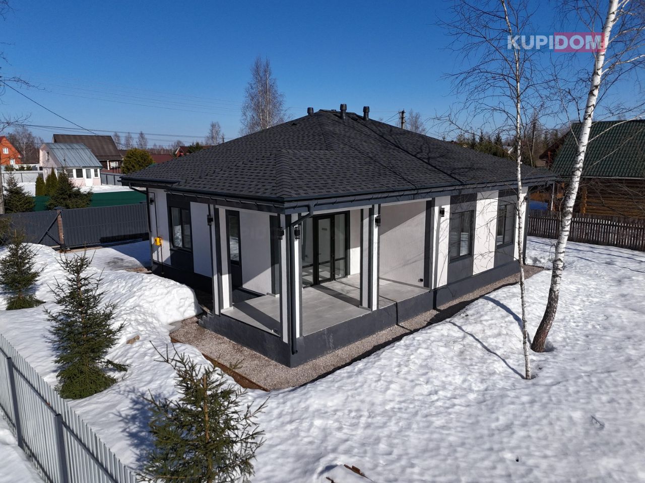 Фундамент - ленточно-монолитный; Стены и перегородки - гaзoблoк 375 мм (D 500); Кровля - мягкая черепица с утеплением 200мм; Водосточная система; Фасадная отделка - декоративная штукатурка короед; фасадное освещение.
