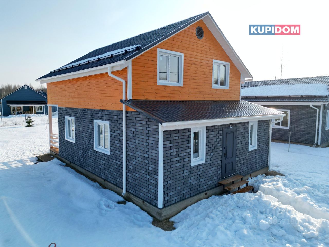 Материал стен: брус 150х100 с утеплением 100 мм; Внешняя отделка дома - имитация бруса/ черепица Хауберк, смонтирована на ОСП; Внутренняя отделка - окрашенная имитация бруса; Окна - двухкамерные стеклопакеты; Крыша - металлочерепица с утеплением, установлена водосточная система и снегозадержатели; Фундамент - ленточный; Полы - ламинат в комнатах, утепление пола 200 мм. Все перегородки в доме шумоизолированы.