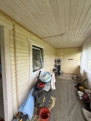 Дом каркасный, обшит деревом. центральное водоснабжение заведено на участок. Электричество в доме. Соседи живут круглый год.
