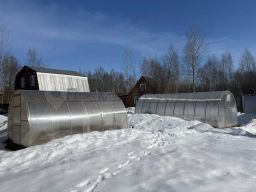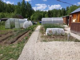 Две теплицы,яблони,груши,вишня.