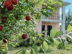Участок хорошо освоен, имеет уклон, исключающий подтопление, и готовый плодовый сад с десятью плодоносящими абрикосами, алычой, шелковицей, жимолостью, вишней, смородиной и грецким орехом.