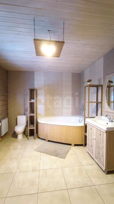 На первом этаже большой просторный холл, просторная кухня, кабинет (можно назначить спальней), бойлерная с санузлом, большая ванная комната с угловой ванной, веранда. Также имеется большой подвал "бомбоубежище" - 25 м2 кв.м.