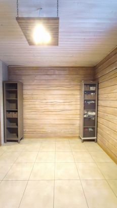 Стены - профилированный брус 200мм. Покрытие: внутри датский экологичный лак, снаружи краска Тikkurilа.