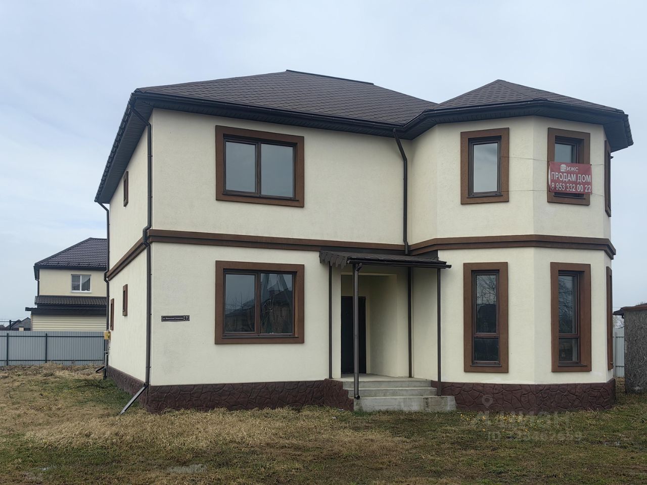 Дом построен из газоблоков, имеет большую кухню-гостиную, два санузла. Он утеплён и находится в стадии предчистовой отделки. Также в доме есть терраса. Земельный участок, на котором расположен дом, составляет 9 соток.