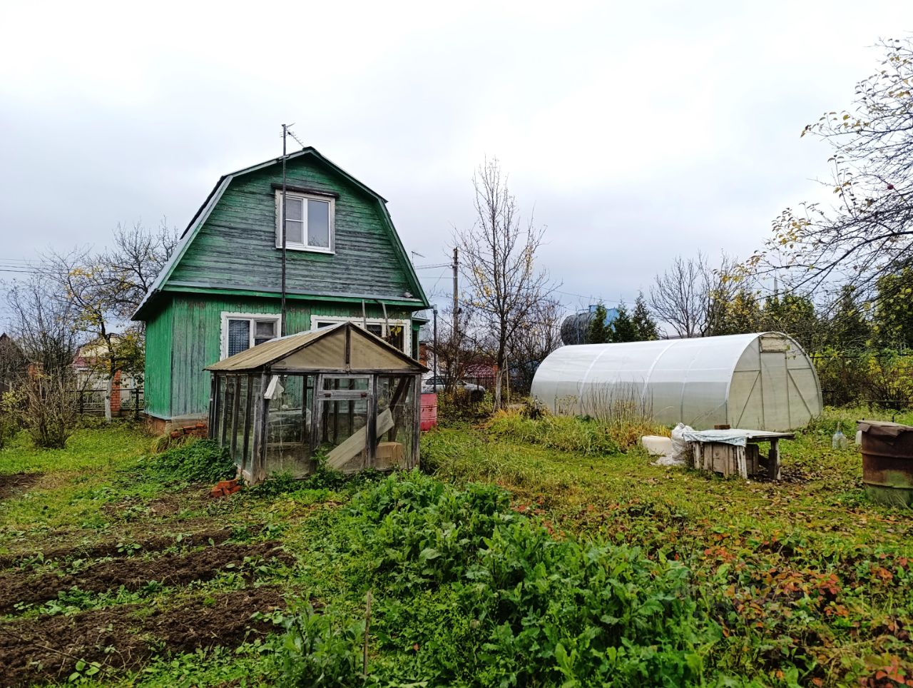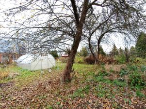 Площадь участка 6 соток. Участок ухожен, взрослые фруктовые и декоративные деревья и кустарник. На участке есть теплица, хозблок, в котором расположены туалет, душ и большая комната свободного назначения, которая сейчас используется, как кладовая.