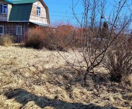 Участок 8 соток, ровный, правильной формы, разработанный. Есть посадки - плодовые деревья и кустарники: яблони, вишни, смородина черная и красная, жимолость, малина.