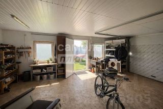 На первом этаже гараж и мастерская 38,4 кв. м. секционные подъёмные ворота