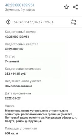 Кадастровый номер: 40:25:000139:951