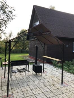 -площадка с мангалом и чугунной уличной печью под навесом;