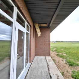 Впереди дома, залита лента для забора, выложены столбы под заезд машины и калитку.