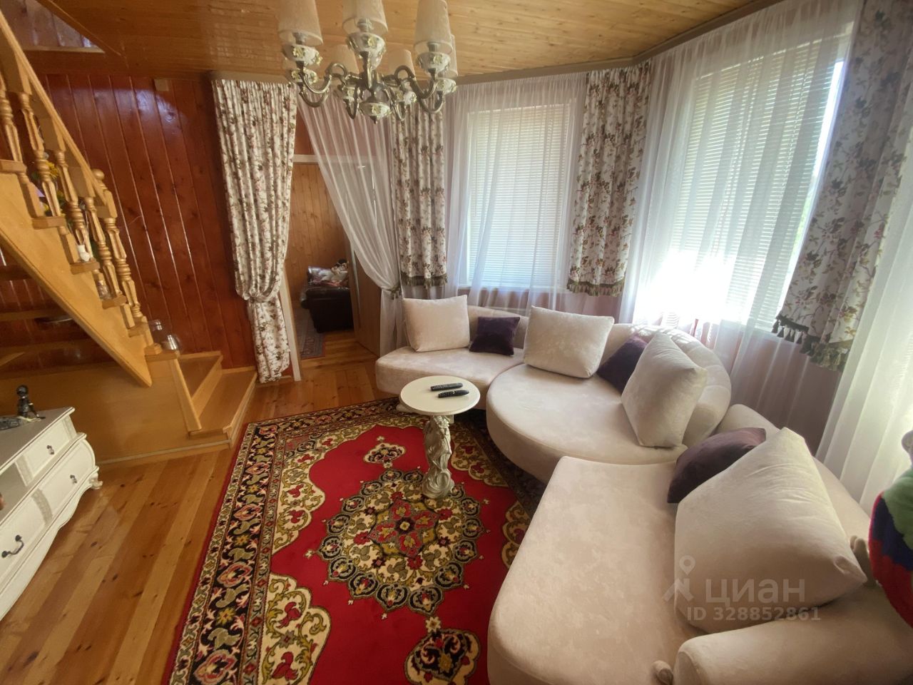 Дом на бетонном ленточном фундаменте, цоколь кирпичный закрыт декоративным камнем. Стены из бруса 150*150 обложены в 0,5 кирпича, внутренняя отделка - деревянная вагонка, доска для пола во всех комнатах Брус покрыт колерованным антисептиком. Вагонка покрыта защитно-декоративным составом антисептика и финишным яхтным лаком.