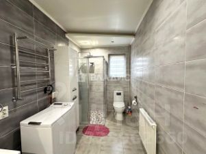 На первом этаже просторная кухня-гостиная 20,3 кв.м с мебелью и встроенной техникой, санузел с большим полезным пространством, где размещена душевая кабина и ванна.