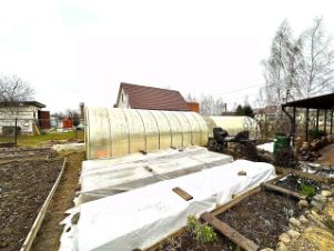 На участке площадью 4,5 сотки есть всё необходимое для комфортной жизни: хозпостройка для хранения инструмента, теплицы, ухоженные грядки, цветы, плодовые деревья и кустарники.