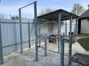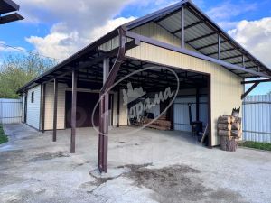 На участке имеется гараж 5х7м с холодным подвалом2,5х2,5м и навес для автомобиля. участок огорожен профлистом, установлены автоматические ворота и система видеонаблюдения.