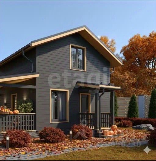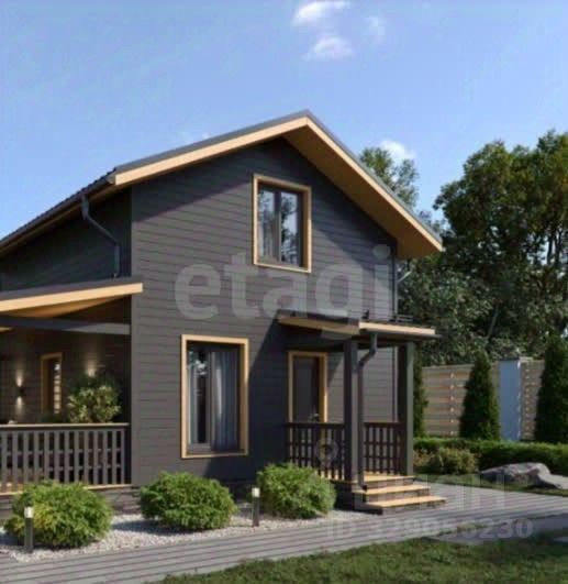 Предлагается к продаже современный каркасный дом общей площадью 59,16 кв. м с просторной террасой 17,25 кв. м.