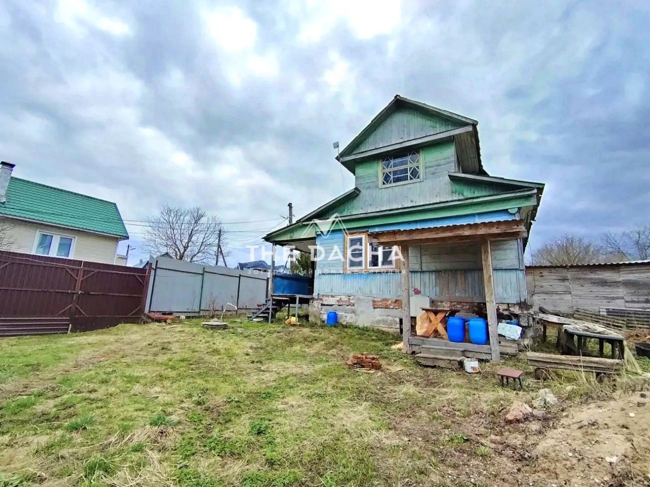 Участок: 9.4 сотки, правильной формы, с небольшим склоном. На территории располагаются хозяйственный блок, гараж, уличный туалет. Забор из профлиста, установлены распашные ворота. Круглогодичный подъезд.