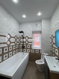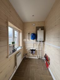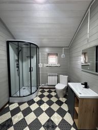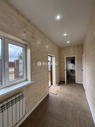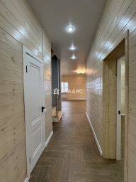 В доме водяной теплый пол по всему первому этажу+ установлены радиаторы отопления, полы кафельная плитка на первом этаже, потолки натяжные, внутри стены имитация бруса.