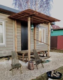 За домом помещение для хранения и навес для хранения садовой мебели.