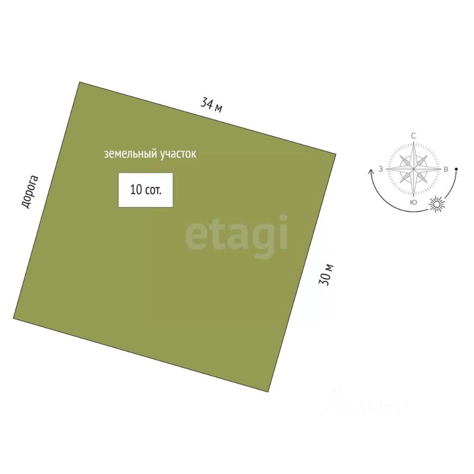 - Продаётся земельный участок, ровной, прямоугольной формы, 10 соток(34 м на 30 м).