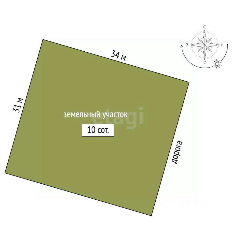 - Продаётся земельный участок, ровной,прямоугольной формы, 10 соток .