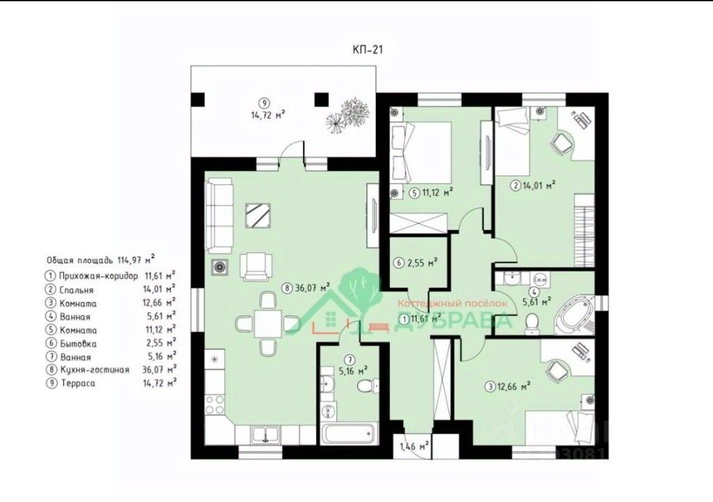 Арт. 90915342. Предлагаю вашему вниманию дом , по индивидуальному проекту в Коттеджном поселке с ПРЕДЧИСТОВОЙ ОТДЕЛКОЙ 114 м2 + терраса 14м2 на участке 10,36 соток