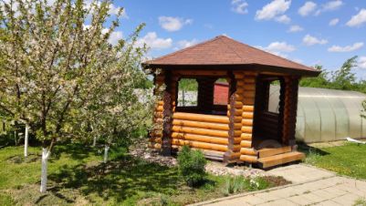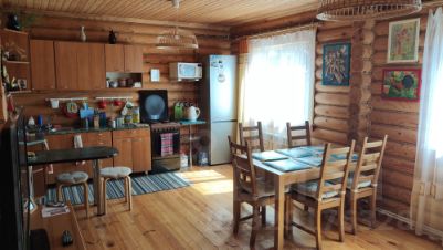 Продаю двухэтажный дом из оцилиндрованного бревна (на генплане поселка, дом 4). Фундамент - железобетонный ростверк, кровля - металлочерепица, окна - стеклопакеты. Изнутри дом обит джутовым канатом, снаружи промазан герметиком на акриловой основе и окрашен. В доме большая кухня-гостиная площадью ~ 28 м.кв., и четыре комнаты. Санузел на первом этаже оборудован душевой кабиной, стиральной машиной, унитазом, раковиной для умывания. По всему дому выполнена стильная ретро проводка. Отопление - электрический котел, выполнена разводка труб, установлены биметаллические радиаторы. Имеется отдельный электрический котел на подогрев воды. Дом полностью мебелирован и пригоден для проживания. На участке большая парковка (въездные ворота), дорожки из плитки. Имеется деревянный сарай, беседка из однотипного с домом оцилиндрованного бревна, теплица из поликарбоната. Забор "фасадной" части из профнастила по кирпичным столбам на ж/б ростверке.