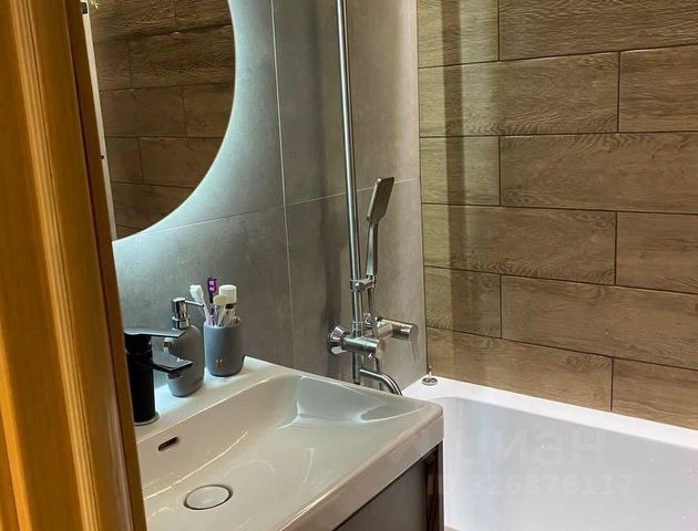 Раздельный санузел, что по утрам очень удобно. Ванная оборудована стиральной машиной, шкаф-пеналом, зеркалом с полочками для хранения.