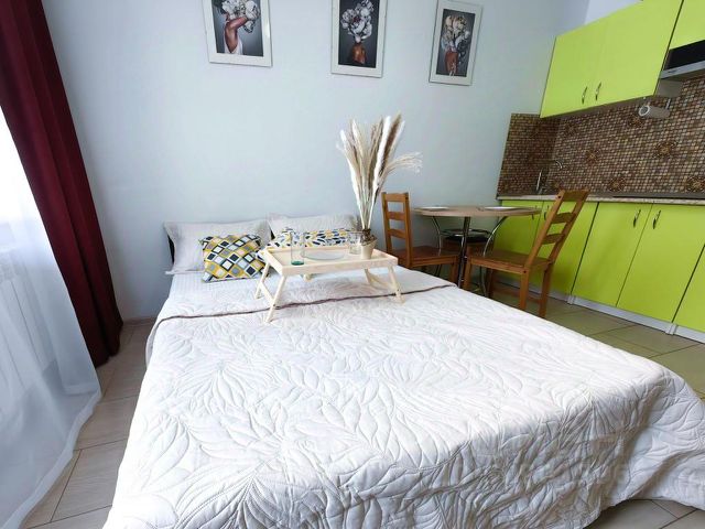 Все необходимое для проживания имеется: 2-х спальная большая кровать 1,60 м, постельное белье, полотенца, посуда, электрический чайник, микроволновка, холодильник, плита, сушилка для белья, стиральная машина, утюг, гладильная доска, Wi-Fi, цифровое TV.
