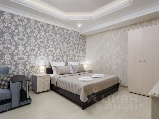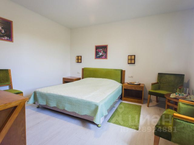 В третьей комнате ( маленькая спальня) - одна двуспальная кровать (18000 х 2000), две прикроватные тумбочки, мягкое кожаное кресло.