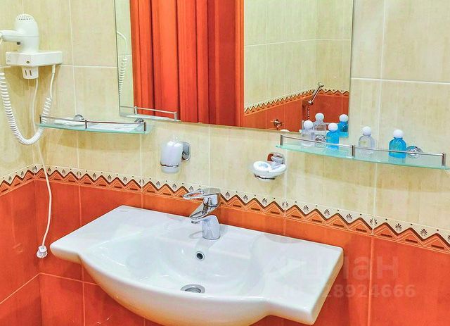 В ванной комнате - ванна, встроенный фен, банные принадлежности, косметический набор, махровый халат.