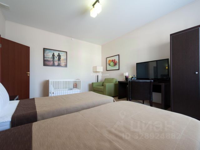 В большой спальне имеется гардероб, письменный стол. телевизор (экран 26 дюймов).