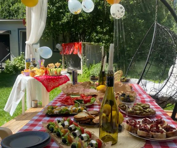 Доброго времени суток всем) Уважаемые гости, для вас сдаётся круглогодичный дом с собственной горячей купелью(или тёплый бассейн), в 15 минутах езды до центра города Калуга, находящийся в тишине и окружении множества деревьев. Бронь в выходные от 2 ночей только с горячей купелью, оплачивается дополнительно см. ниже*) Будни (вскр.- четверг)бронь от 1 ночи. Если вам нужен домик без купели, И вы не планируете купаться, есть рядом на соседней улице такой же только в синем интерьере, есть здесь на карте в поиске можно набрать дом 50 метров с купольной беседкой, синий интерьер) В вашем распоряжении будет: - Теплый дом на 6 спальных мест, 2 комнаты, 45 м. Размещение на ночь всего 6 человек,включая всех детей с 8 до 18 лет : 2 гостя кровать + 2 гостя диван + 2 гостя диван. +3-е детей всего до 7 лет бесплатно при размещении с родителями). Больше по количеству -нет, извините заранее, дом не большой и может быть не совсем комфортно. Температура в доме от +22 до +30. отопление электро-конвекторы греют дом. - Красивая беседка крытая с вечерним освещением ( не отапливается, но укрывает от ветра и осадков ) - Кострище-очаг, решетки, шампура, мангал имеются (уголь, розжиг ваши) (Дрова для костра берите с собой или подготовим предварительно по запросу,напишите пожалуйста- 350 р. Мешок- березовые дрова по времени хватает на 2,5 часа у костра ). - Качели . - Огороженная территория полностью, на участке один дом, отдельный вход. - Парковка огорожена на 24 машино-места внутри участка. Для вашей безопасности ведётся видеонаблюдение (входная зона парковка и территория участка). - Горячая купель готовим к приезду, купаться-париться вечером, по предварительному запросу (+3850), Чан с горячей водичкой +40 +44, одной растопки хватает на 3,4 часа купаний, как в бане, только на свежем воздухе. (на 2й день отдыха так же можем подготовить купель, если вы решили следующим вечером погреться в Чане (доп.подогрев 1900- по запросу напишите пожалуйста) С 18 мая работает тёплый летний бассейн +30t+33t воды (оплачивается отдельно 1500/день - подготовка: наливаем воду, подогрев, и обслуживание) Купание не ограничено по времени. Заселяем молодые компании от 22 лет (всем по паспорту). Заключаем договор. Всего до 6 человек. Современный и уютный домик 45 кв. м. 2 комнаты со всеми удобствами (свет, вода горячая/холодная, душ кабинка, с/у, кухня-гостиная. Все постельные принадлежности имеются, кухонные принадлежности на 6 персон и т. д., утюг, гладильная доска, фен). В доме курение запрещено, только на беседке,и на улице. С животными всё обговаривается (воспитанный питомец до 5-7 кг + 1500 р.) Нельзя шуметь, музыка до 22:00 ч на улице на участке. Подогрев Чана(купель горячая, (бассейн)- производим мы,т.е.-печник, гости не занимаются растопкой печи, отдыхают! Залог от 3500 вносится при заселении и возвращается обычно в день выезда после уборки дома в течение дня. Заезд с 16 ч. Выезд до 13 ч. Возможно раннее заселение или поздний выезд, по запросу- по в